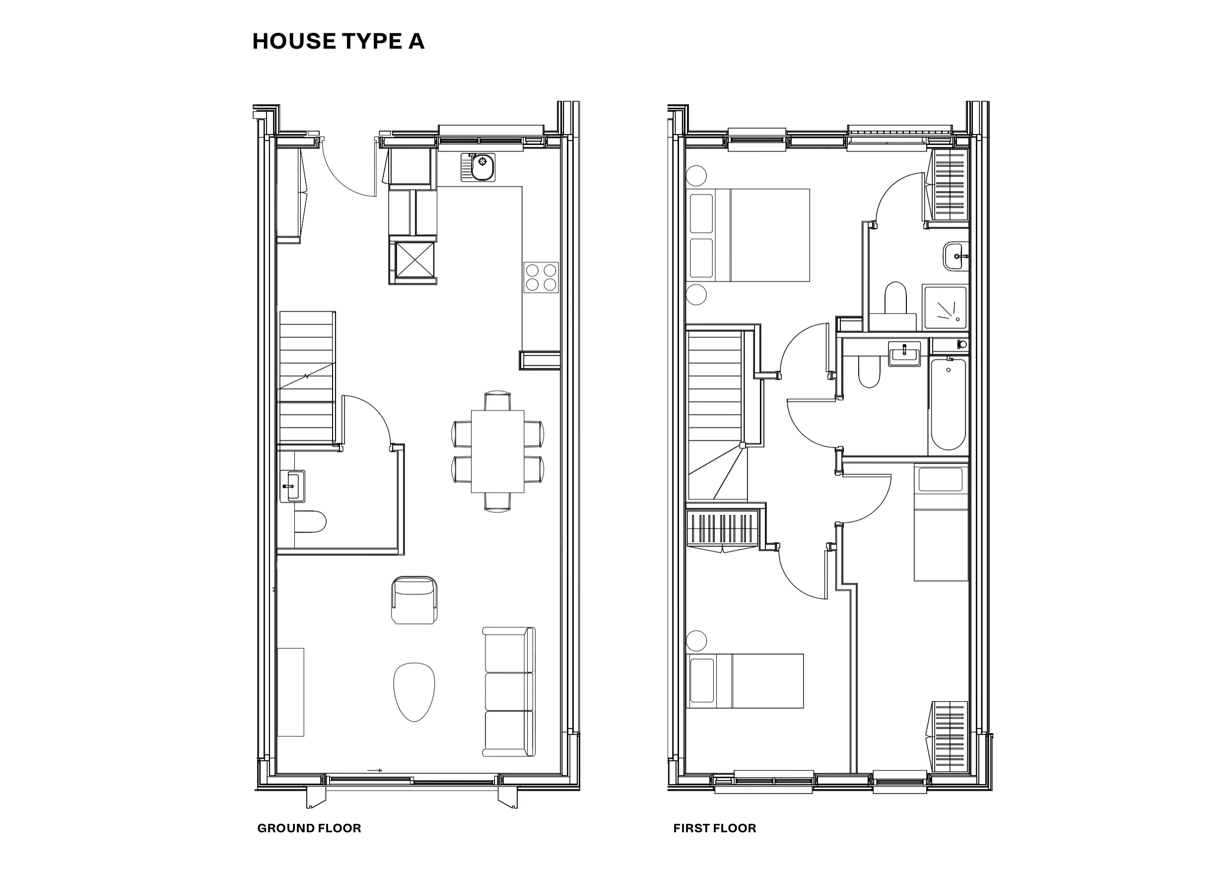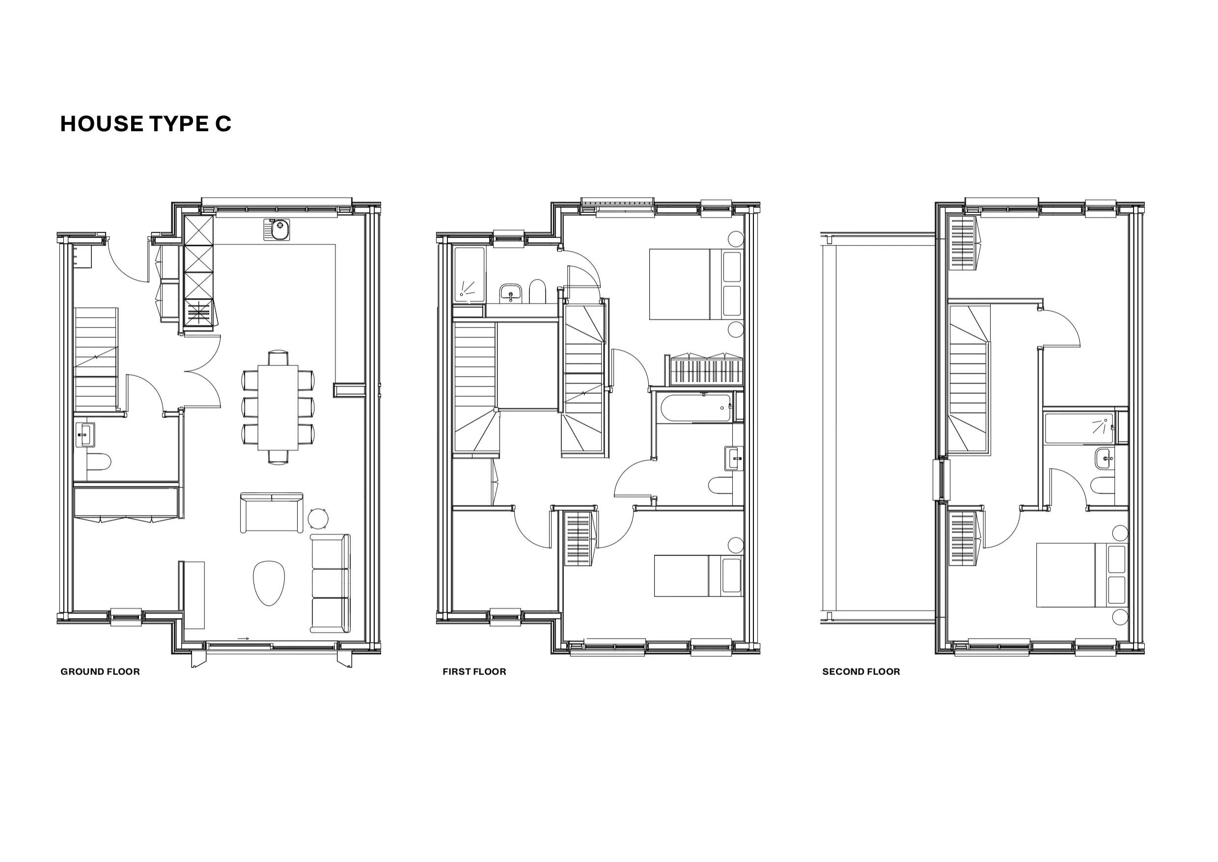Our three bedroom house comes with three comfortable bedrooms, each with underbed storage and a full size wardrobe. Your generous living space includes three bathrooms, an open plan living and dining area, a fully-equipped modern kitchen with an oven, 4-ring hob and washer-dryer and a garden of your own.